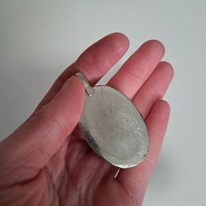 This elegant pendant features a striking red centerpiece surrounded by intricate silver detailing. Perfect for adding a touch of sophistication to any outfit.