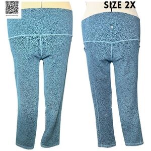 Athleta Salutation Stash II Pocket - Textured Tights Teal Blue Micro Cheetah - 7/8 Tights - Size 2X - NWOT