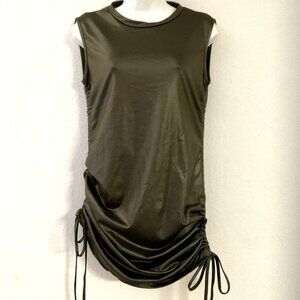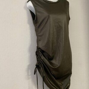 GREEN PU LEATHER BODYCON DRESS SIDE DRAWSTRING SLEEVELESS TANK DRESS PARTY
