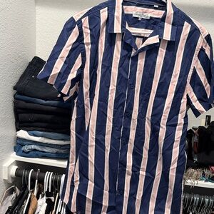 American Eagle Outfitters Blue and Pink Striped Shirt