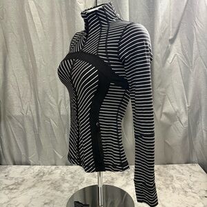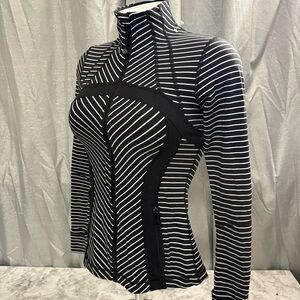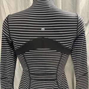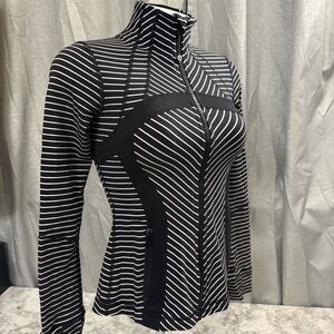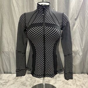 Chic black and white parallel Define jacket from Lululemon. Features a stylish design.