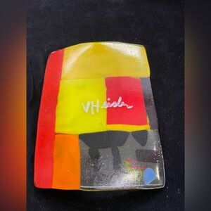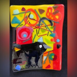 “Choose Joy”Fused Art Glass With Crow Handmade Rectangular Tray 8”x6”Original