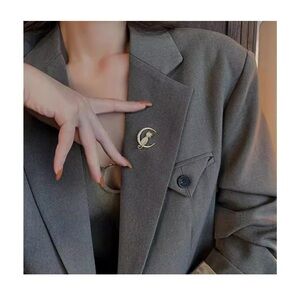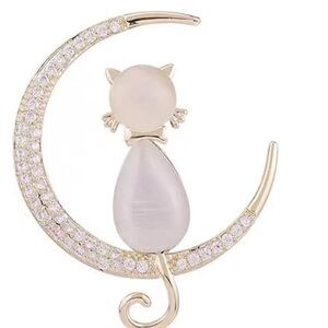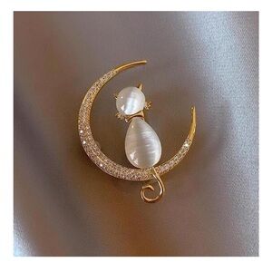 This exquisite brooch features a charming cat sitting on a crescent moon, crafted in elegant gold and silver tones. Perfect for adding a whimsical touch to any outfit.