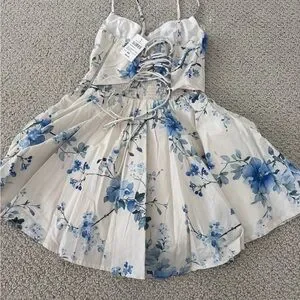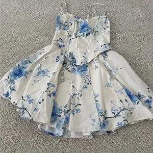 Elegant kids dress with blue floral design. Ideal for casual outings.