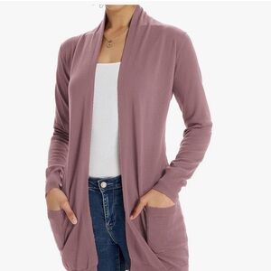 NWT Grace Karin Women's Mauve Open Front Cardigan with pockets