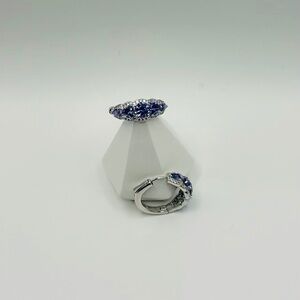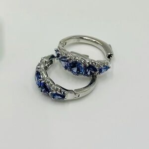 These stunning Bomb Party earrings feature a beautiful light tanzanite cubic zirconia as the main stone, offering a soft, elegant sparkle that catches the light perfectly. Set in rhodium-plated metal for a bright, luxe finish, they’re the perfect blend of delicate and eye-catching.