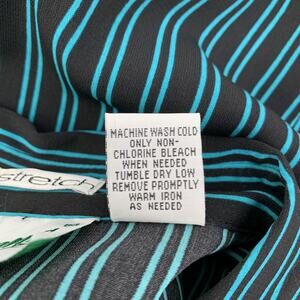 Joanna Button Front Stripe Shirt L Stretch Long Sleeve Black Blue Career Office