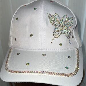 White Rhinestone Butterfly Cap