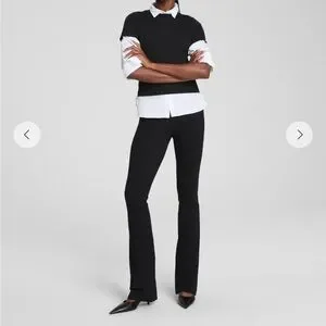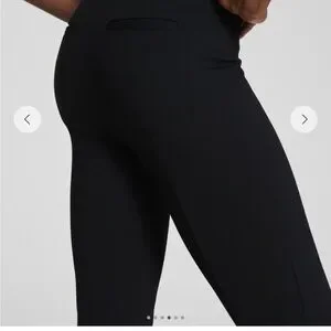 High end feeling spanx fabric that can be dressed up or down. 32 inch inseam (regular length) and size large so good for a size 12-14 but has stretch so plenty of wiggle room for holiday festivities. New- husband accidentally threw them in the wash so no longer have tags, but they were just tried on. I have a pet and smoke free home.