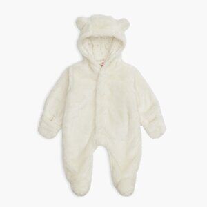 Bundle up baby for chilly weather with this plush faux-fur footie suit complete with a snuggly hood topped with adorable bear ears.