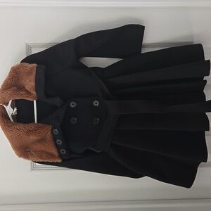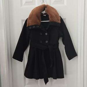 Stylish Black Kids Coat with Brown Collar, NWOT, 5T