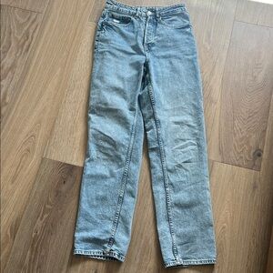 Trendy light blue jeans. Ideal for everyday style. High rise mom jean style. Straight leg. Front buttons closure. Worn once excellent condition