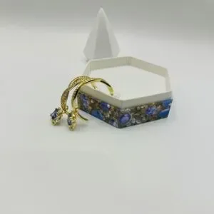 These gorgeous Bomb Party earrings are a perfect blend of elegance and sparkle! Featuring a stunning light tanzanite cubic zirconia center stone, each earring is accented with delicate clear CZs that add extra brilliance from every angle. The gold-plated finish gives them a warm, luxurious glow.