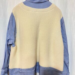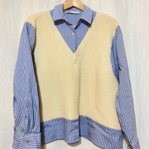 ZARA Cream and Blue Mixed Knit Dress Shirt With Sweater Vest (Oversized XS-S)