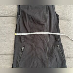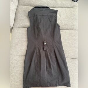 Sleek black mini dress with zipper front. Features a stylish belted waist. Ideal for versatile styling. No belt but easily replaced. NO tags.