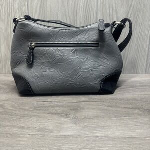Stone & Co. Leather Black Shoulder Bag Purse Top Zip Front And Back Pockets
