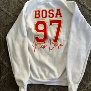 Show your team spirit with this stylish white 49ers Era men’s sweater. Perfect for any fan, this sweater combines comfort and team pride.