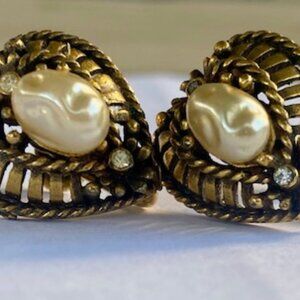 Beautiful vintage Coro earrings from the late 1940s–1950s, featuring Coro’s iconic romantic heart design. Classic screw-back style, typical of Coro jewelry from this mid-century era.