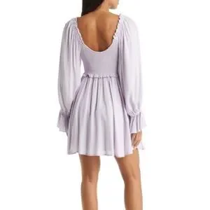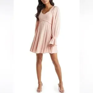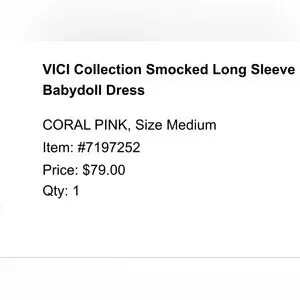 VICI Collection Coral Pink Smocked Long Sleeve Babydoll Dress from Nordstrom. Only worn once. Super flattering! I wore the dress off my shoulders to a wedding. Like-new condition.