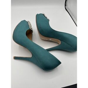 The Bagley Mischka Jade Jeweled High Heeled Shoes are a stylish and fashionable choice for women looking to make a statement. With a solid green color and a peep toe design, these ultra high stiletto heels are perfect for adding a touch of glamour to any outfit. Made of synthetic material and featuring a pump style, these shoes are designed for both comfort and style. The brand's reputation for quality and attention to detail ensures that these shoes are not only trendy but also built to last. Perfect for a night out or special occasion, these Jade jeweled high heeled shoes are sure to turn heads.