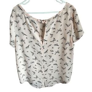 Torrid Short sleeve pink top blouse paper bird print Size 1 = 1X ties in back