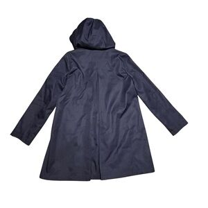 Stylish navy hooded coat with button closure. Perfect for cool weather.Navy Blue. Excellent condition