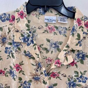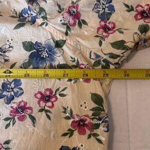 BOBBIE BROOKS VINTAGE TOP SIZE 26W/28W. FLORAL EYELET BUTTON DOWN, SHORT SLEEVE
