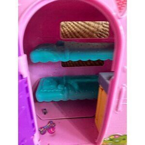 Adorable Barbie Chelsea camper trailer with a matching turquoise convertible. Features fun sticker details and cheerful colors—great for pretend road trips and imaginative play!
