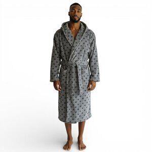 True Religion Men's Plush Robe Pockets Charcoal Monogram Christmas Gift Him NWT