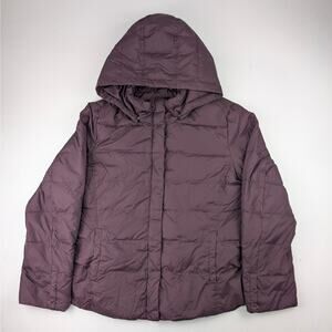 Eileen Fisher Women's Size Large Hooded Down Puffer Jacket Plum