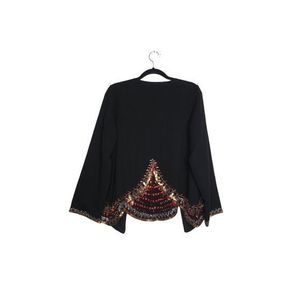 Novica Hand Beaded Glass Western Jacket Black Size Small Cardigan Long Sleeve