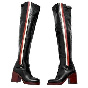 Dior Diorider Over-the-Knee Boots Black Red Stripe Leather 38 Fall Runway 2018