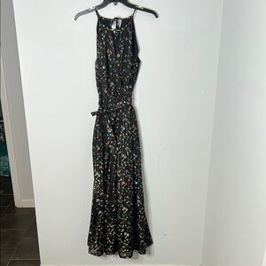 Anthropologie Eva Franco Edita Black Metallic Wide Leg Jumpsuit