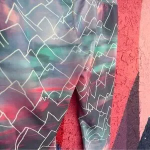 Mossimo yoga pants from target. Graphic design with mountains and pastel blue, pink and purple clouds.