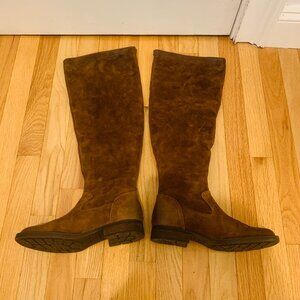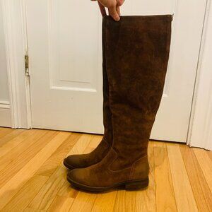 BORN WOMEN'S BORMAN BOOTS ROUND TOE Nubuck Brown Knee-High Riding Boots NEW