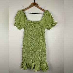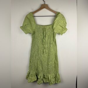 Faithful the Brand Cette Linen Lime Green Smocked Ruffled Mini Dress Sz L
