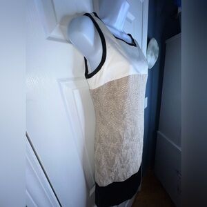 Karen Millen US 6 UK 10 Beige Black Colorblock Shift Cocktail Dress S