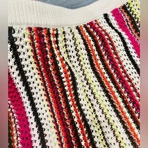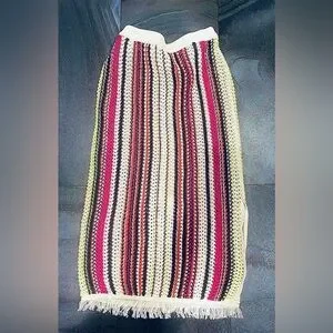 New without tags multicolor striped maxi crochet skirt with fringe hem size M small slit on a side