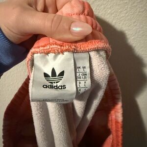 Vibrant coral tie-dye shorts by Adidas. Perfect for casual wear.