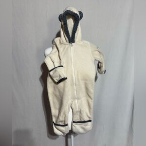 Keep your little one snug in this cozy cream hooded one piece. Perfect for chilly days.