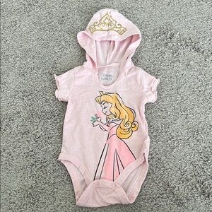 Disney Baby Pink Aurora Hooded Crown Bodysuit Onesie