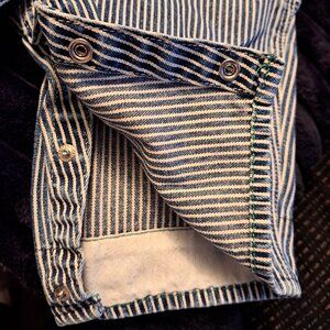 OshKosh B’Gosh Vestbak Striped Denim Railroad Engineer Bib Overalls W/Snap Legs