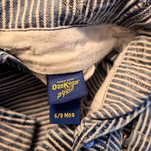 OshKosh B’Gosh Vestbak Striped Denim Bib Engineer Overalls ,Size 6/9 months Good Pre-owned Condition *see Pictures for condition