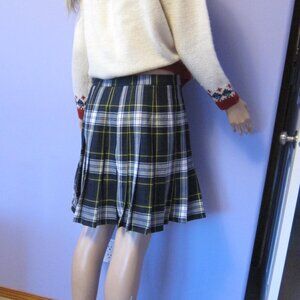 PRINGLE of SCOTLAND Wool BLACK Tartan Classic Plaid Pleated Wool Skirt HRH Label