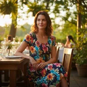 Talbots silk dress, floral dress, navy floral midi, tropical dress, fit and flare dress, summer event dress, garden party dress, vacation dress, resort wear, classic style, quiet luxury, coastal style, feminine style, lightweight silk, wedding guest dress, dinner date outfit, timeless wardrobe, summer essentials, elegant floral print, polished style, warm weather outfit