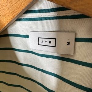 AYR New Age Silk Peasant Blouse Size Medium Ivory Green Striped Button Up