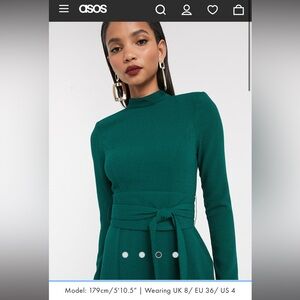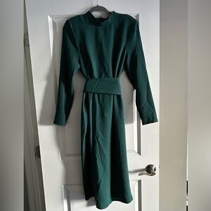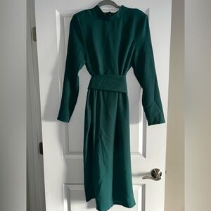 Chic long sleeve midi dress. Features a stylish tie waist. Ideal for versatile wear.