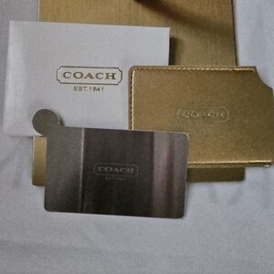 Stylish Coach cardholder in black or gold, features a handy mirror 🪞.