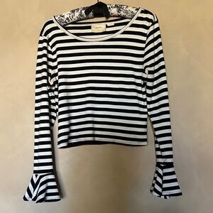 Anthropologie Maeve Flouncy Striped Bell Sleeve Top in Black and White size M
