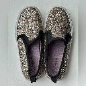 Cat & Jack Silver Glitter Slip On Sneaker size 2